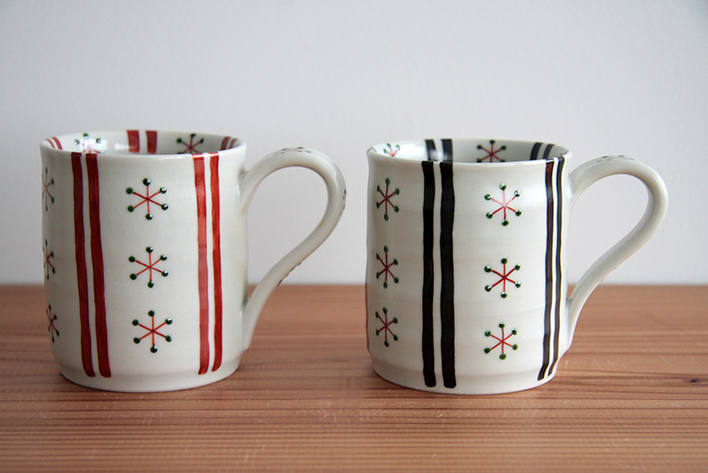 浜島美菜子 赤絵色絵線文と鎖文マグカップ 5,184円(税込) Φ約7.5cm h約8cm