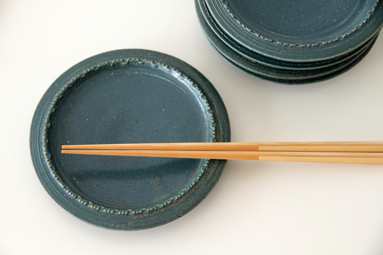 熊本さんの青は食材を合わせ易い青。取り皿ににもケーキさらにも良いサイズ。