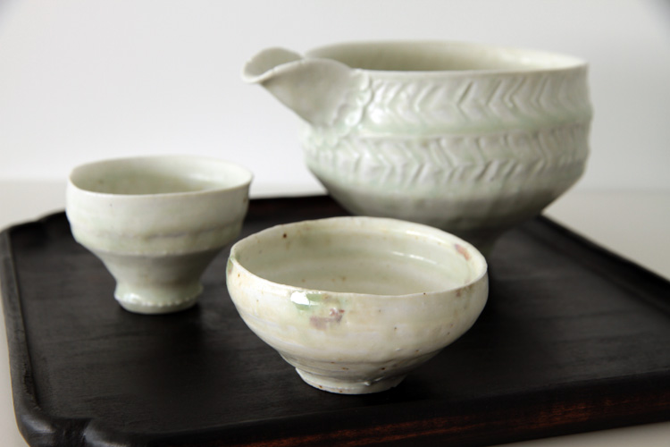 熊本象 白磁鎬片口酒器&緑彩酒盃&白磁高杯 10,500円&5,250円&6,300円(税込)