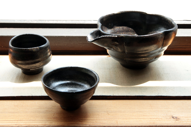 熊本象 黒釉片口酒器&黒釉酒盃 8,400円&5,250円(税込)