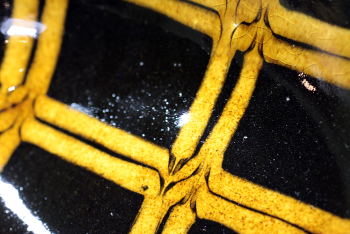 黒をベースに飴色スリップの、重厚感漂うウツワ。