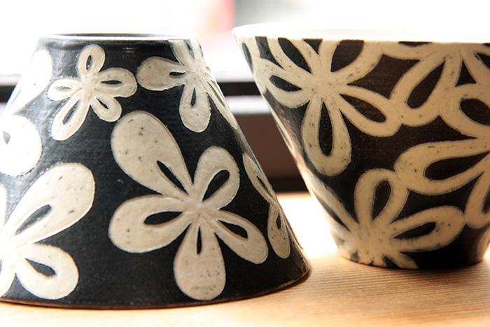 黒化粧を掻き落として白い素地を見せています。