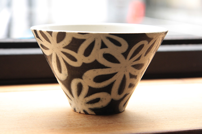 掻き落としの花柄。