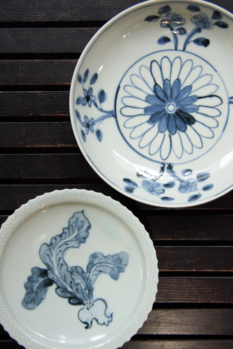 写真上の花の絵付けのお皿は6寸弱のサイズ。