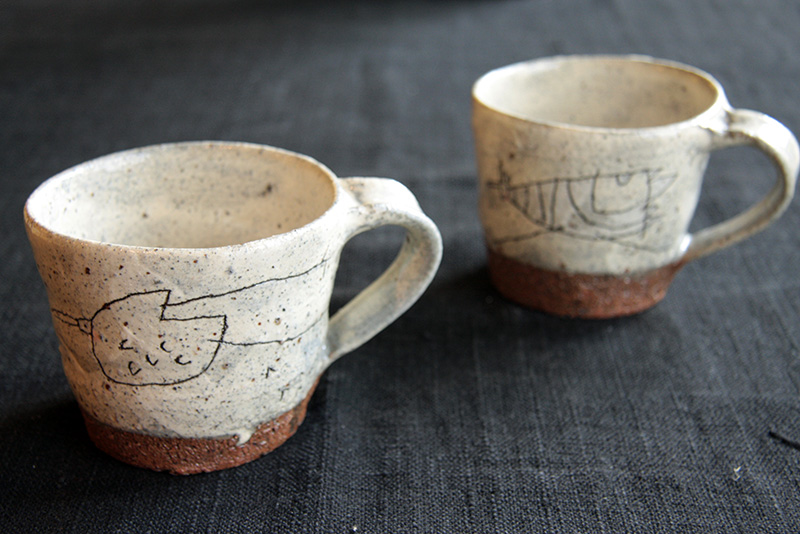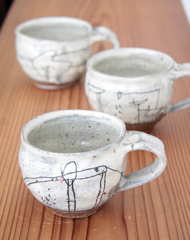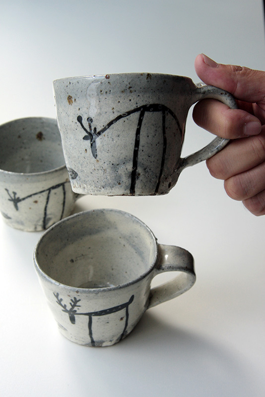 清水しおり MUGカップ(黒絵・ひっかき・丸) 各2,700円(税込)