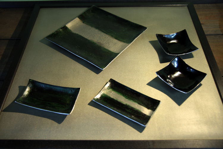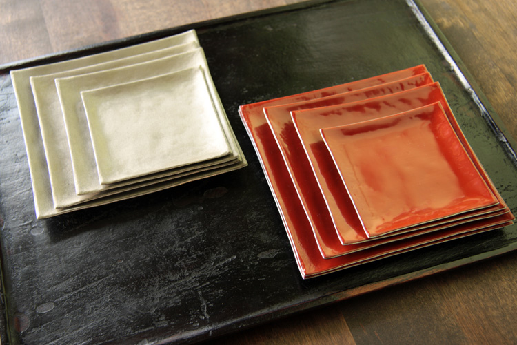 奥)金胎 4.5寸皿 織部塗り 5,040円(税込) 一辺約13cm h約0.8cm