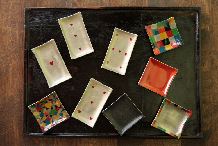 左)金胎 織部塗り 深小皿 3,150円(税込) 約8cm×4.5cm h約1cm