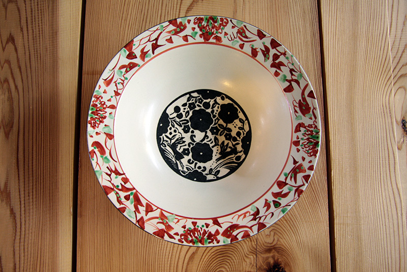 赤と黒の躍動感と、細かな作業が見られる大鉢。