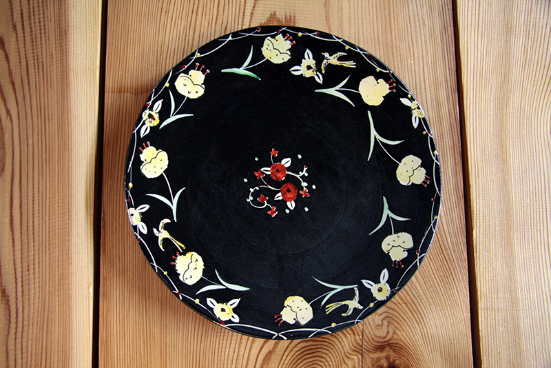 矢島操 黒地イロエ彩大皿 16200円(税込) Φ約27cm h約2.5cm